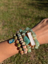 Our bracelet stacks are a beautiful accessory that combines unique crystals, shimmering druzy stones and polished beads to create a stunning look. Each stack comes with 5 individual bracelets to create a variety of options to match any outfit or style.