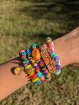 Our bracelet stacks are a beautiful accessory that combines unique crystals, shimmering druzy stones and polished beads to create a stunning look. Each stack comes with 5 individual bracelets to create a variety of options to match any outfit or style.